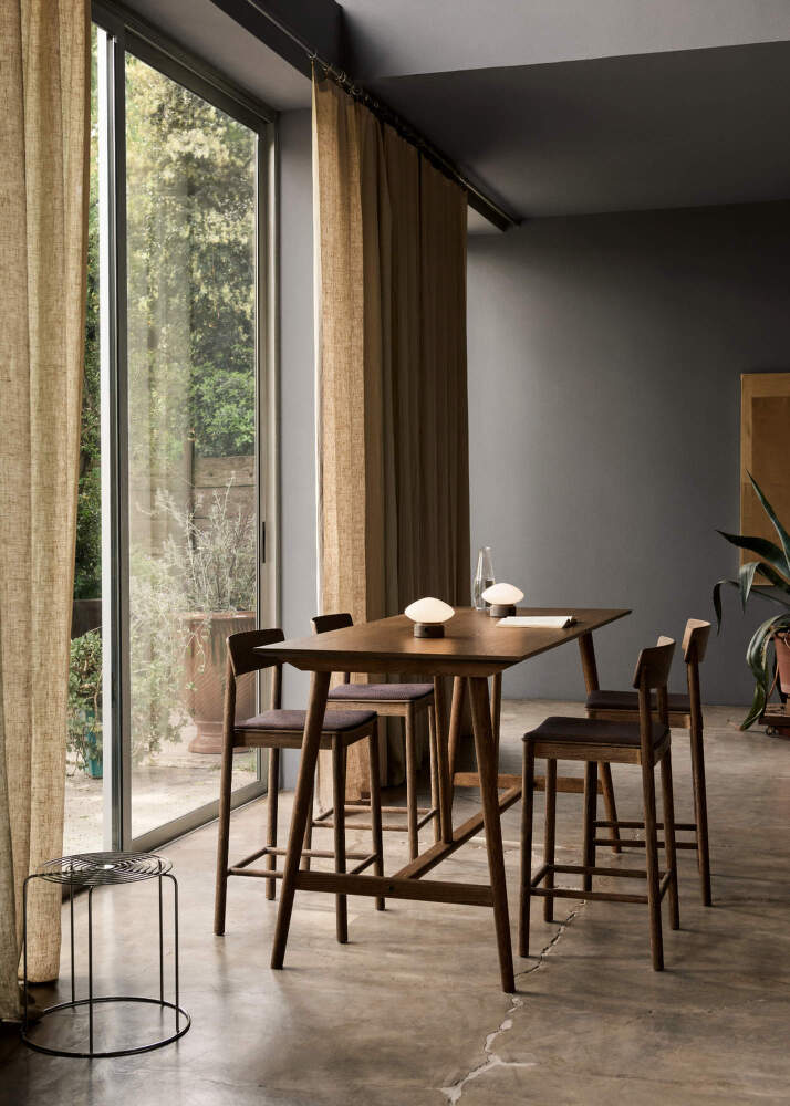 Vyšší barový stôl In Between SK28, ktorý pre dánsku značku &Tradition navrhol dizajnér Sami Kallio. Prevedenie: výška 105 cm, dymovo lakovaný dub.