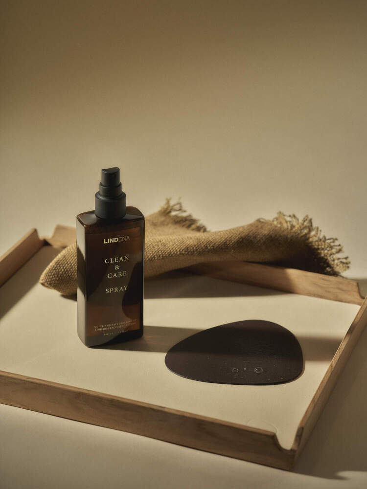 Kľúčom k udržaniu kožených výrobkov v perfektnom stave je správna starostlivosť. Pokiaľ aj vy chcete, aby vám vaše obľúbené doplnky vydržali čo najdlhšie, nemal by vo vašej výbave chýbať univerzálny čistiaci sprej Clean&Care, ktorý bol vyvinutý špeciálne pre dokonalé čistenie a starostlivosť o prestieranie a stolové podložky od Lind DNA. Použitie je jednoduché - stačí ho nastriekať priamo na povrch alebo vlhkú handričku a zotrieť. Bonusom je aj príjemná vôňa.
