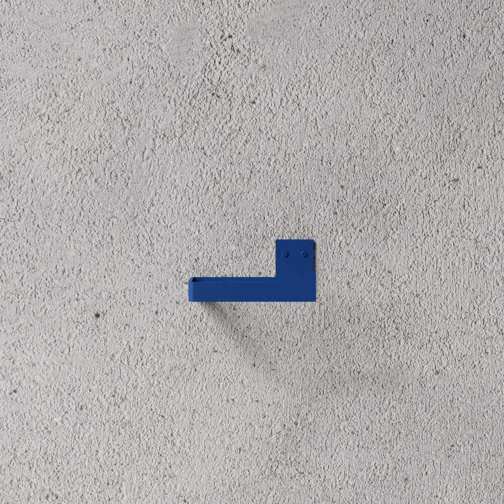 Minimalistický držiak na toaletný papier z kolekcie kúpeľňových doplnkov od značky Nichba v modrom prevedení.