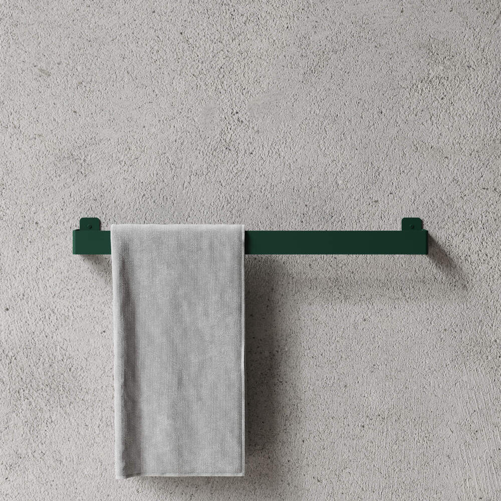 Towel Hanger je vyrobený z jedného kusu ocele, ktorý je opatrený silným práškovým nástrekom, čo dodáva povrchu vysokú odolnosť a chráni pred vlhkosťou - každodenným používaním v kúpeľni.