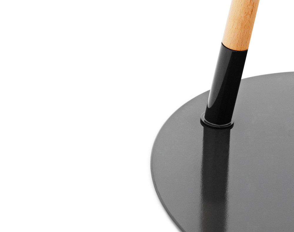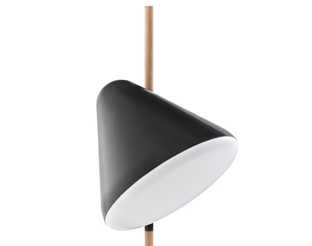 Veľká, tvarovo hravá stojacia lampa Hello Lamp s výškou 165 cm, vytvára príjemné rozptýlené svetlo. Telo lampy z bukového masívu kontrastuje s prvkami z bielej lakovanej oceli. Lampu vyrába dánska značka Normann Copenhagen. Prevedenie šedá farba.