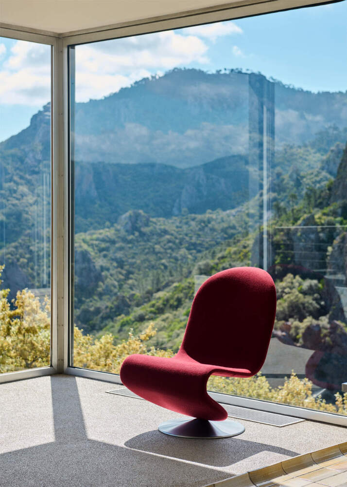 Jedálenská stolička System 1-2-3 vychádza z progresívneho návrhu Vernera Pantona z roku 1973 a predstavuje spojenie ergonómie, technickej logiky a výraznej siluety. Tvarovaná, plne čalúnená škrupina pôsobí kompaktne a ponúka pohodlné sedenie aj pri dlhšom stolovaní.