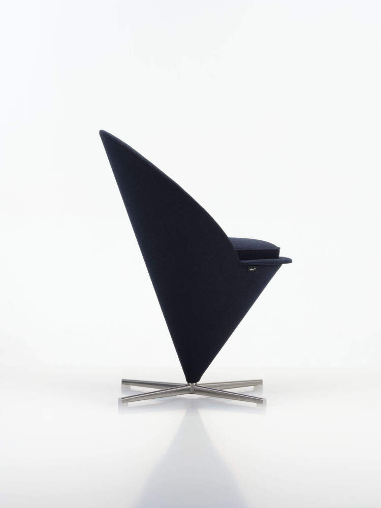 Kreslo Cone Chair patrí k najikonickejším návrhom Vernera Pantona a dodnes si zachováva výraznú, sebavedomú siluetu. Kužeľový tvar tvorí pevný architektonický základ, z ktorého vyrastá komfortná čalúnená škrupina s operadlom a podrúčkami. Dizajn pôsobí kompaktne, no zároveň ponúka pohodlné sedenie.