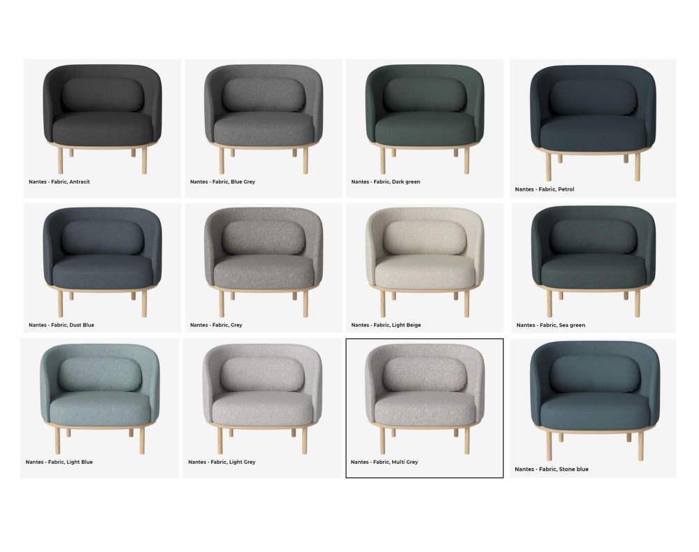 Uvedená cena sa vzťahuje na prevedenie s čalúnením v látke Nantes a podnože z bielo lakovaného dubového dreva. Cena a dostupnosť ďalších variant na dotaz.