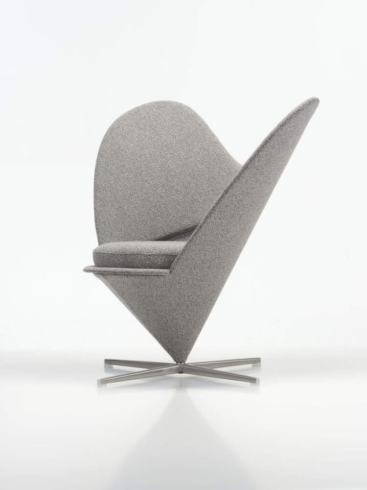 Návrh Vernera Pantona pochádza z konca 50. rokov a prirodzene nadväzuje na pôvodný koncept kužeľového sedenia. Heart Cone Chair dnes pôsobí ako osobitý solitér, je to kreslo, ktoré v priestore rozhodne upúta pozornosť.