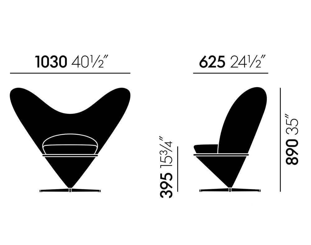 Kreslo Heart Cone Chair vychádza z rovnakého konštrukčného princípu ako klasické Cone Chair, jeho výraz však formuje charakteristické operadlo v tvare srdca. Táto jemná zmena siluety dodáva kreslu mäkší, ústretovejší výraz, bez toho, aby stratilo svoju architektonickú čistotu a výraznosť.