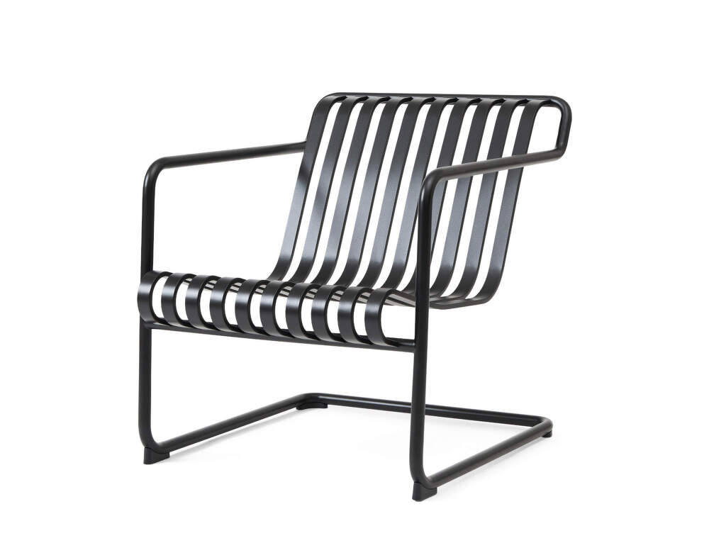Nižšie oceľové kreslo Palissade Cantilever z kolekcie moderného vonkajšieho nábytku, ktoré navrhol Ronan Bouroullec pre dánsku značku HAY. Farba: antracitová.