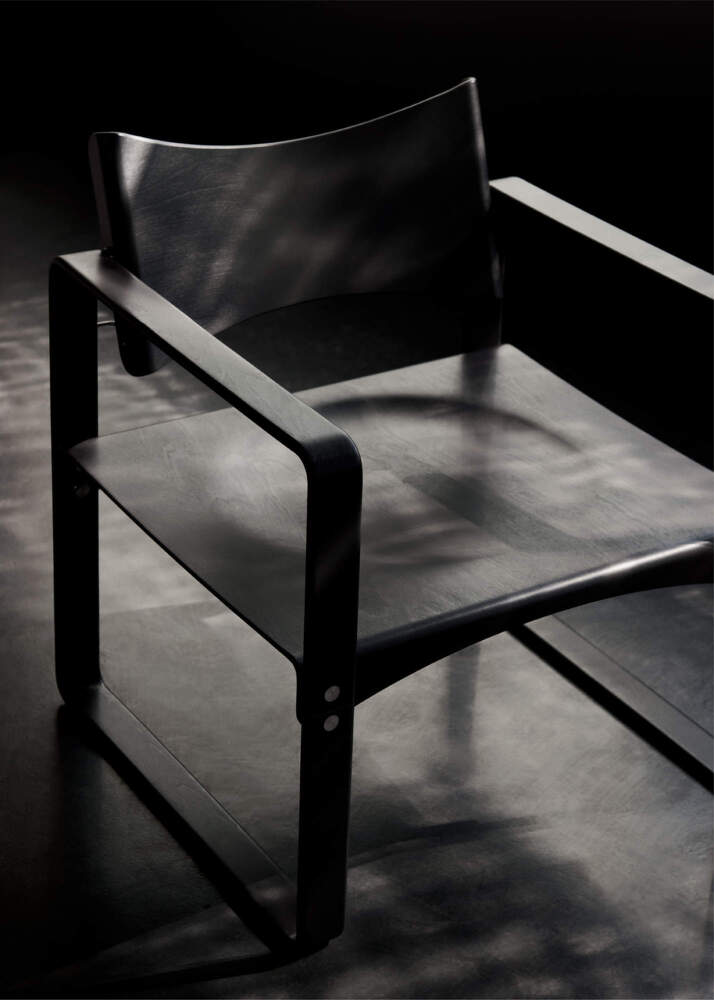 Konštrukcia kresla je vyrobená z ohýbanej a lakovanej brezovej preglejky s certifikáciou FSC. Tvar je ľahký, vizuálne čistý a ergonomicky funkčný. Minimalistická forma zdôrazňuje samotný materiál aj štruktúru bez zbytočných dekoratívnych prvkov.