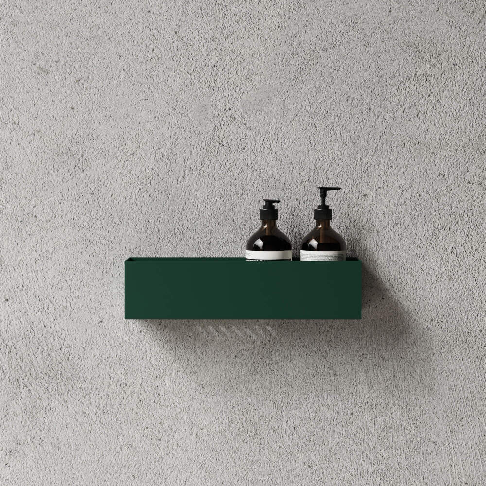 Minimalistická odkladacia polica Bath Shelf od značky Nichba v zelenom prevedení.