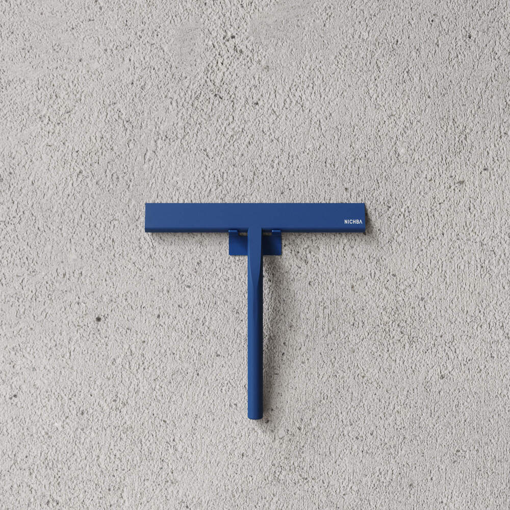 Minimalistická stierka z kolekcie kúpeľňových doplnkov od značky Nichba v modrom prevedení.
