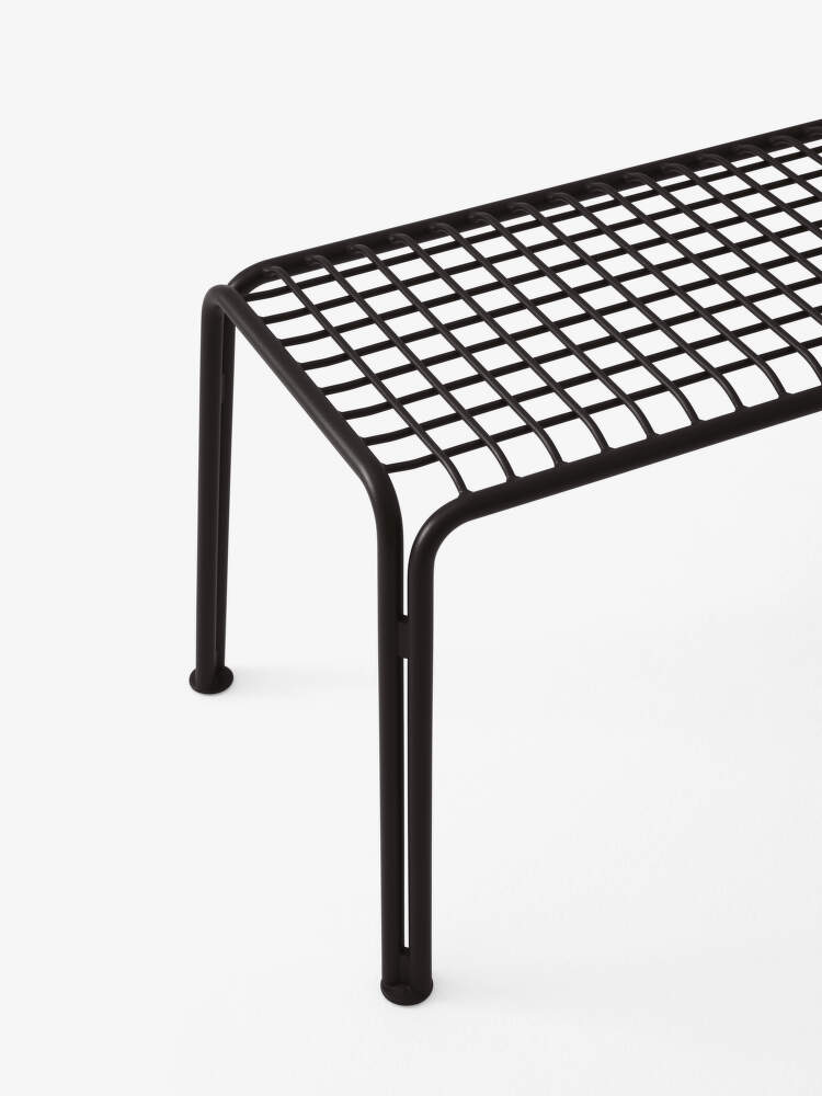 Záhradná lavica z odolnej ocele Thorvald SC112 od dánskej značky &Tradition navrhnutá štúdiom Space Copenhagen. Prevedenie: čierna.