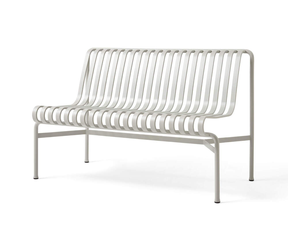 Oceľová lavička Palissade Dining Bench bez podpierok rúk z kolekcie moderného vonkajšieho nábytku bola pre dánsku značku HAY navrhnutá dizajnérskou dvojicou Ronanom a Erwanom Bouroullecovými. Farba: sivá.