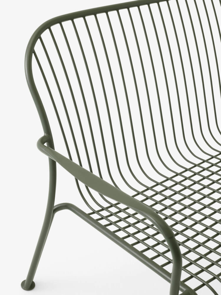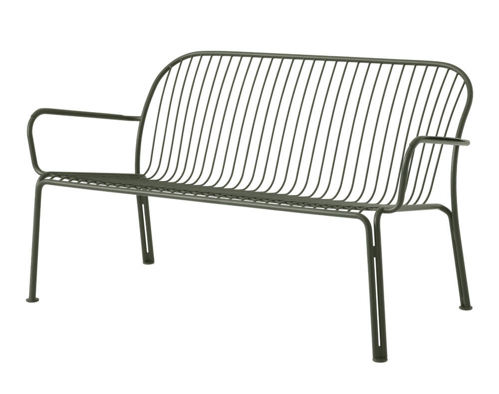 Záhradná lavička s podrúčkami Thorvald SC110 od dánskej značky &Tradition navrhnutá štúdiom Space Copenhagen. Prevedenie: zelená.