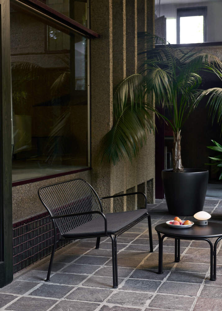 Záhradná lavička s podrúčkami Thorvald SC110 od dánskej značky &Tradition navrhnutá štúdiom Space Copenhagen. Prevedenie: čierna.