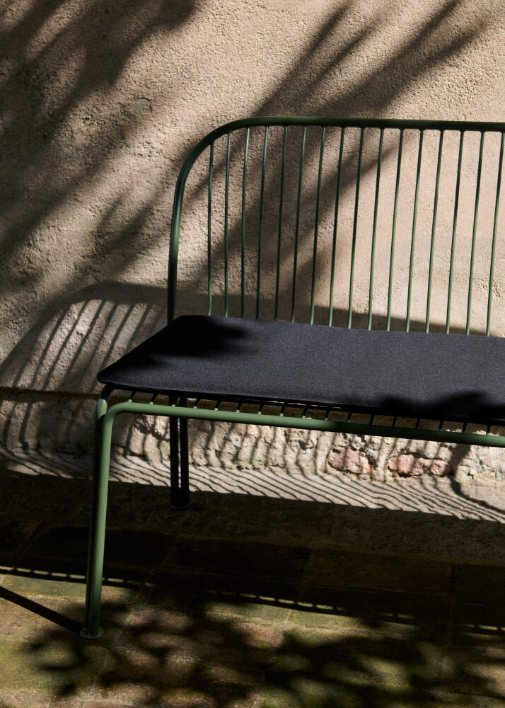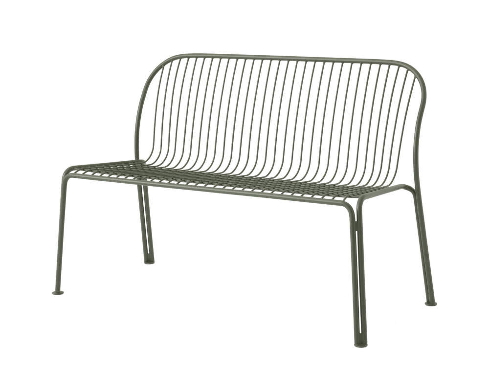 Záhradná lavička z odolnej ocele Thorvald SC111 od dánskej značky &Tradition navrhnutá štúdiom Space Copenhagen. Prevedenie: zelená.