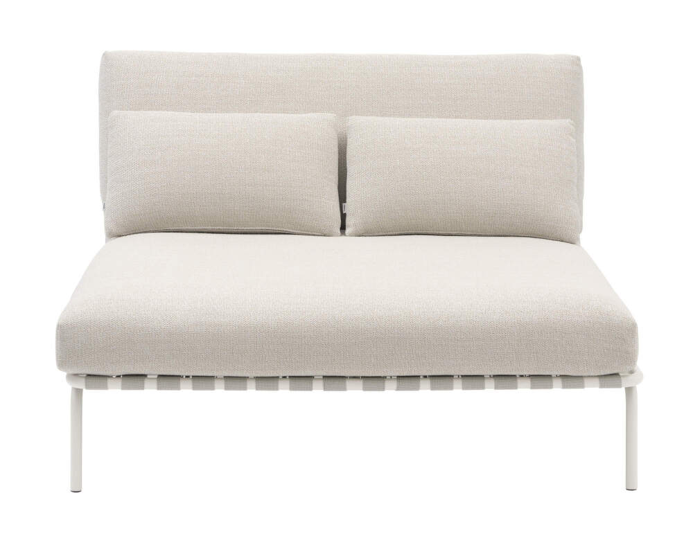 Hlboké, sklonené operadlo a mäkké vankúše z rýchloschnúcej peny, potiahnuté odolnou vonkajšou látkou, poskytujú maximálny komfort aj pri dlhodobom sedení. Vďaka dvom voľným vankúšom ponúka ležadlo ešte väčšiu univerzálnosť a oporu. Protiskluzová úprava udržuje čalúnenie bezpečne na mieste, zatiaľ čo viditeľné popruhy dodávajú ležadlu charakteristický detail.