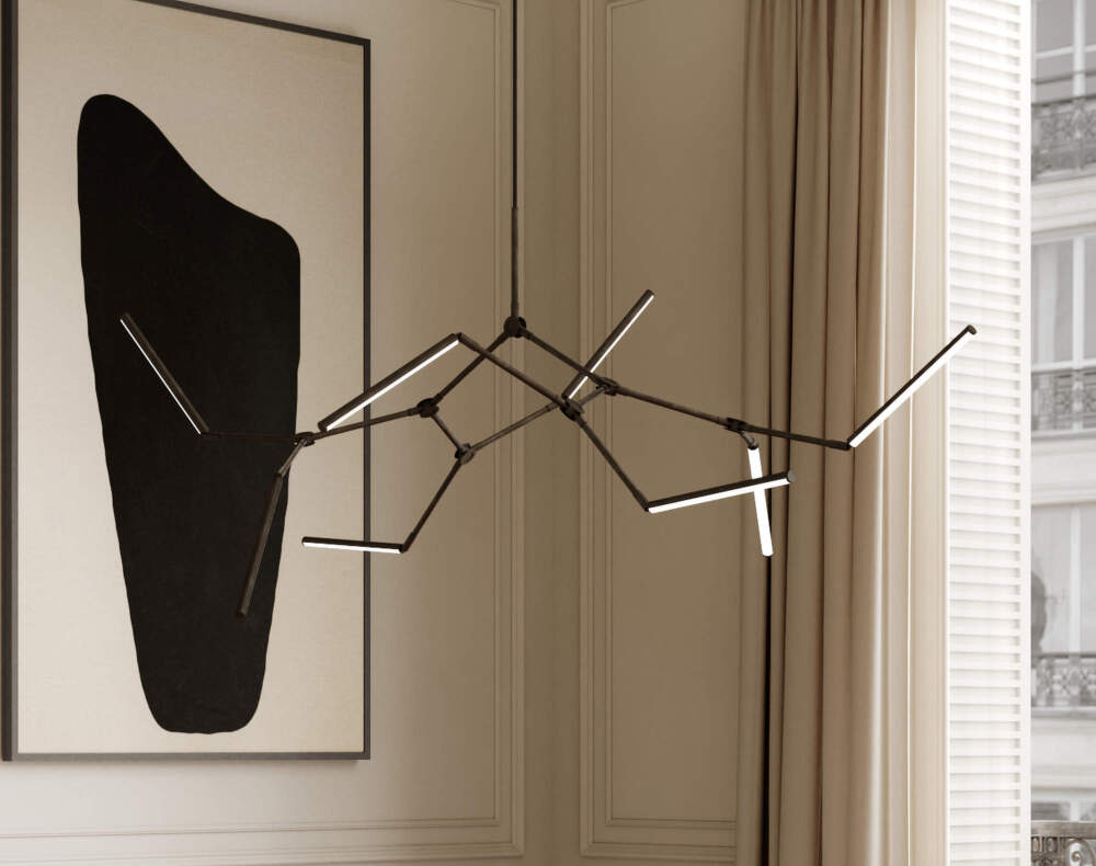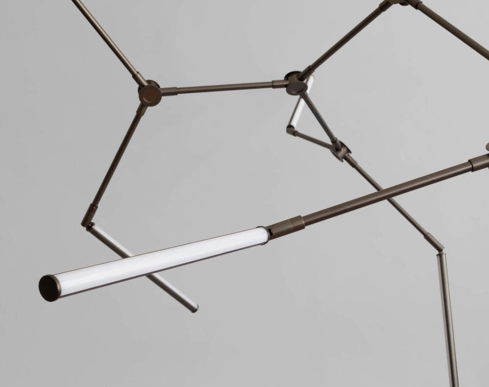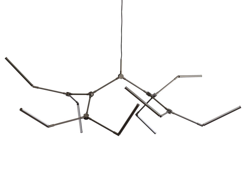 Luster Stick je väčšia verzia z kolekcie Stick, ktorá kombinuje svetlo, geometriu a technickú precíznosť. Konštrukcia svietidla pozostáva z ôsmich nastaviteľných kovových ramien s povrchovou úpravou z brúseného bronzu, na konci ktorých sú opálové akrylové svetelné jednotky s integrovanými LED zdrojmi.