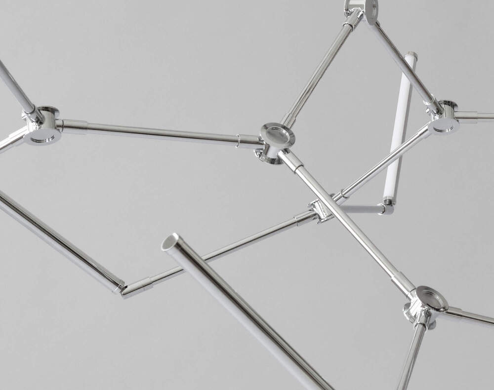 Luster Stick je väčšia verzia z kolekcie Stick, ktorá kombinuje svetlo, geometriu a technickú precíznosť. Konštrukcia svietidla pozostáva z ôsmich nastaviteľných kovových ramien s lešteným chrómovým povrchom, na konci ktorých sú opálové akrylové svetelné jednotky s integrovanými LED zdrojmi.