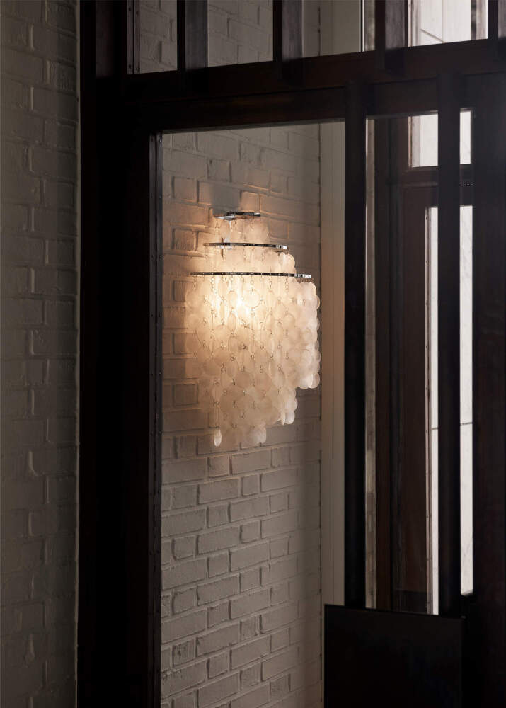 Nástenná lampa Fun patrí k ikonickým návrhom Vernera Pantona z polovice 60. rokov. Rovnako ako ostatné varianty kolekcie pracuje s pohybom, štruktúrou a svetlom ako s formotvornými prvkami. Na stene pôsobí ako ľahký, takmer šperkový objekt, ktorý priestoru dodáva jemnú dynamiku.