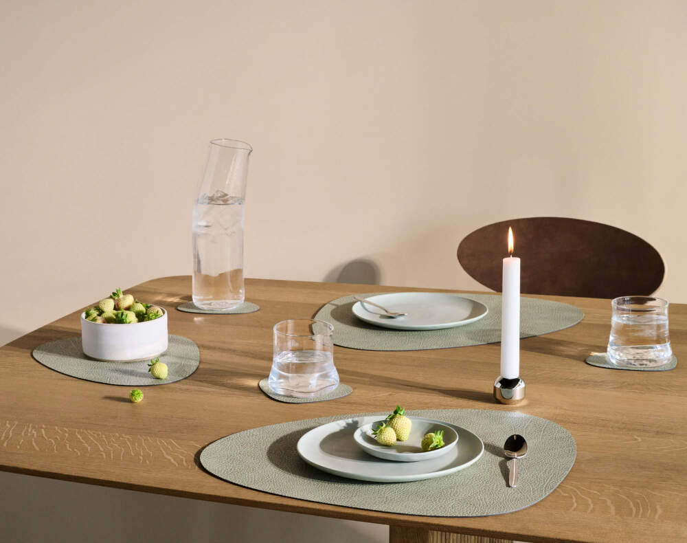 Dodajte svojmu stolu šmrnc a eleganciu ikonickým prestieraním a podložkami pod poháre od značky Lind DNA. Nielen dizajnovo atraktívne, ale aj ekologicky šetrné podložky vyrobené z recyklovanej kože OEKO-TEX® boli predtým, než sa stali praktickým doplnkom každého jedálenského stola, nadprodukciou vzniknutou pri výrobe topánok, tašiek a opaskov. Teraz sú v organickom tvare k dispozícii s rôznou štruktúrou povrchu a v niekoľkých farebných prevedeniach. Dokonalú harmóniu vytvorí najmä v kombinácii s rovnako tvarovaným prestieraním a riadom z kolekcie Curve.