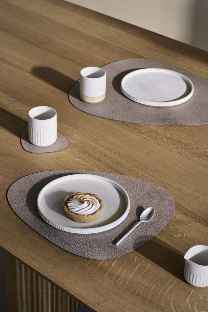 Dodajte svojmu stolu šmrnc a eleganciu ikonickým prestieraním a podložkami pod poháre od značky Lind DNA. Nielen dizajnovo atraktívne, ale aj ekologicky šetrné podložky vyrobené z recyklovanej kože OEKO-TEX® boli predtým, než sa stali praktickým doplnkom každého jedálenského stola, nadprodukciou vzniknutou pri výrobe topánok, tašiek a opaskov. Teraz sú v organickom tvare k dispozícii s rôznou štruktúrou povrchu a v niekoľkých farebných prevedeniach. Dokonalú harmóniu vytvorí najmä v kombinácii s rovnako tvarovaným prestieraním a riadom z kolekcie Curve.