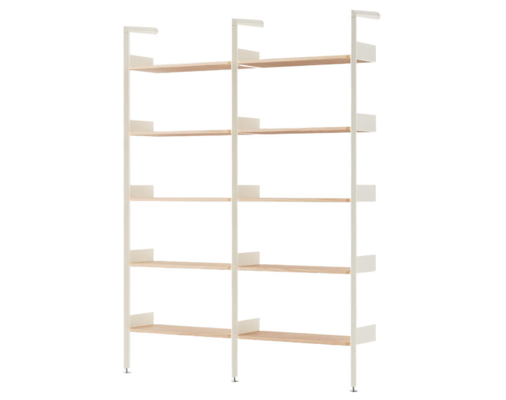 Rombe v konfigurácii A je čisto policová zostava, ktorá ponúka vzdušné, vizuálne ľahké úložné riešenie pre knihy, dekorácie alebo pracovné nástroje. Vďaka otvorenej konštrukcii a kombinácii hliníka a dreva pôsobí subtílne, ale napriek tomu stabilne. Skvele funguje ako domáca knižnica alebo praktické pracovné zázemie v ateliéri či čitateľskom kútiku.