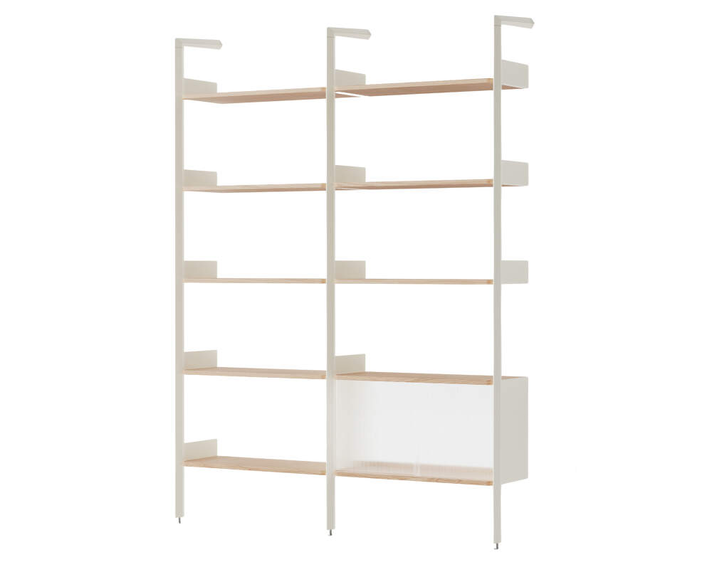 Rombe v konfigurácii C spája otvorené police s uzavretou skrinkou vybavenou posuvnými dverami z rákosového skla, ktoré prepúšťajú svetlo, ale zároveň zabezpečujú decentné zakrytie uložených predmetov. Skvele sa hodí do obývacej izby, kde ponúka priestor ako na vystavenie, tak aj na skrytie vecí, ktoré nemajú byť na očiach.