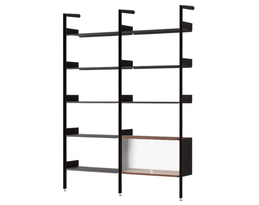 Rombe v konfigurácii C spája otvorené police s uzavretou skrinkou vybavenou posuvnými dverami z rákosového skla, ktoré prepúšťajú svetlo, ale zároveň zabezpečujú decentné zakrytie uložených predmetov. Skvele sa hodí do obývacej izby, kde ponúka priestor ako na vystavenie, tak aj na skrytie vecí, ktoré nemajú byť na očiach.