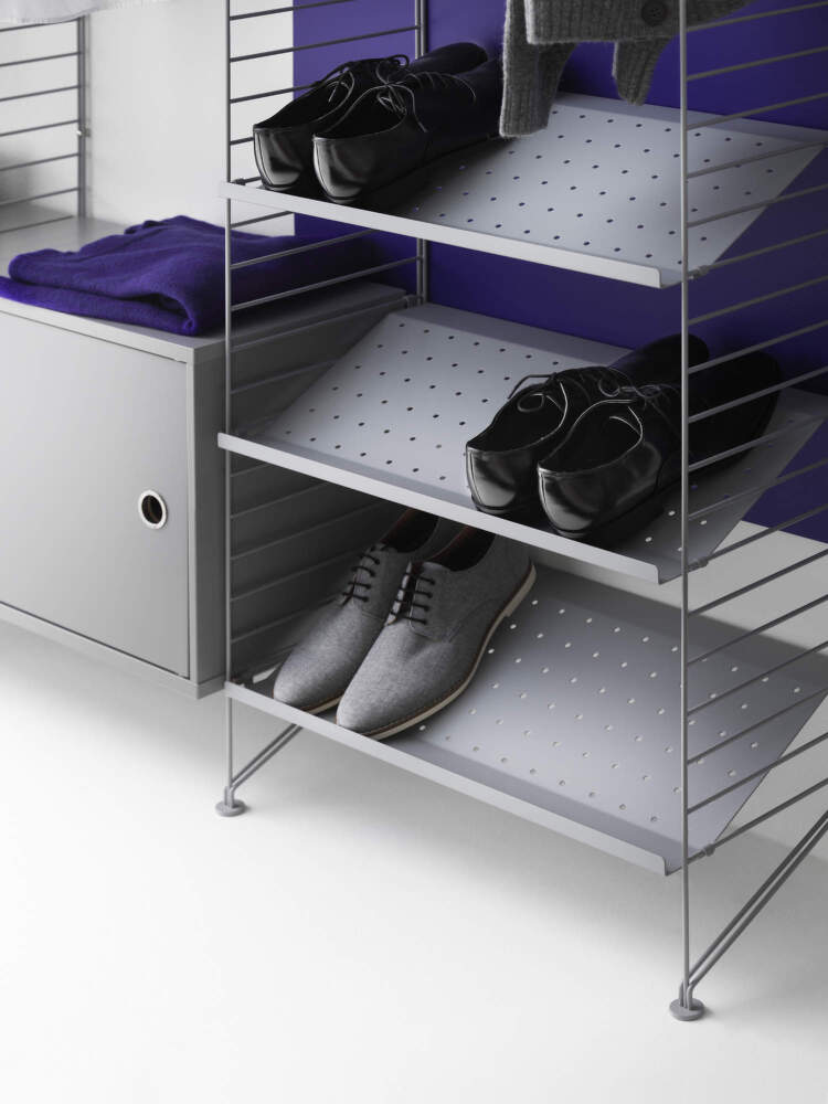 Hotová policová zostava Hallway T v klasickom String dizajne je ideálnou voľbou pre stredne veľké chodby. O vaše bundy, kabáty i pokrývky hlavy sa postarajú police a tyč v hornej časti. Spodná polica zase zaistí, že sa na zemi nebudú povaľovať žiadne topánky. Horné skrinky poskytujú priestor pre všetky nevyhnutné veci, ktoré nechceme mať na očiach každý deň.