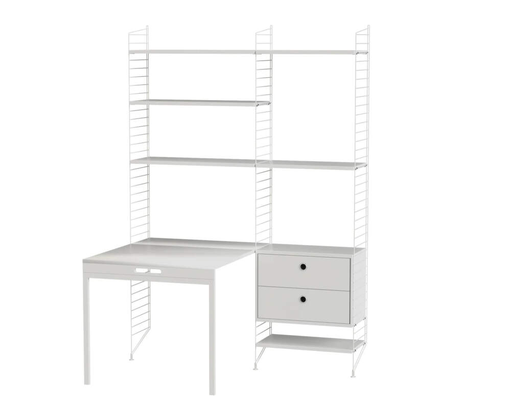 Či už pracujete z kancelárie alebo domova, minimalistická zostava Workspace E od značky String ponúka štýlové riešenie, ktoré pokryje všetky vaše potreby. Táto kombináciaje skvelou voľbou najmä pre menšie pracovne. Je elegantná, jednoduchá a nezaberie príliš miesta. Všetky dôležité dokumenty môžete pohodlne uložiť do praktickej skrinky so zásuvkami.