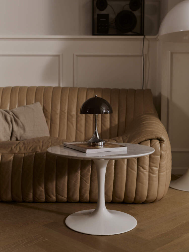 Lampa Panthella 160 V3 je vyrobená z recyklovaných materiálov a spája udržateľnosť s najmodernejšou technológiou. Nabíjanie cez USB-C a elegantný svetelný indikátor zaisťujú jednoduché používanie, zatiaľ čo nadčasový dizajn odkazuje na dedičstvo dánskeho modernizmu.