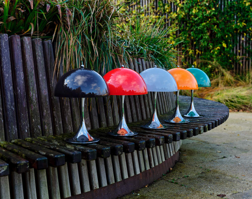 Prenosná lampa Panthella 250 je k dispozícii v niekoľkých ďalších farbách a dokonale zapadne nielen do obývacích izieb, spální alebo pracovní, ale vďaka stupňu krytia IP44 ju možno používať aj vonku.