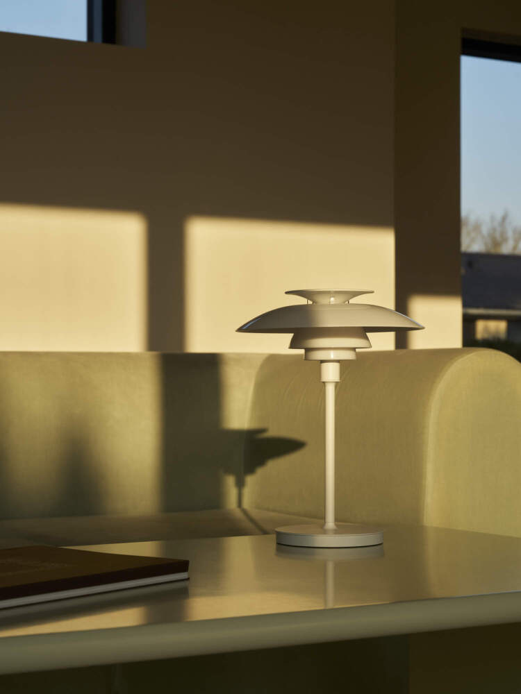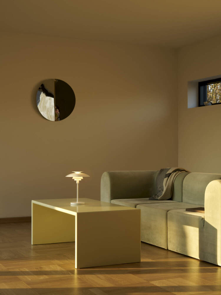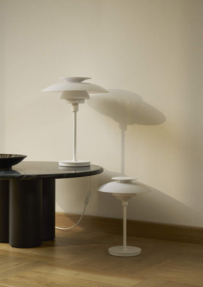 Prenosná lampa PH 80 nadväzuje na nadčasové dedičstvo dánskeho dizajnéra Poula Henningsena a jeho ikonický systém troch tienidiel, ktorý zaisťuje rovnomerné osvetlenie bez oslnenia.