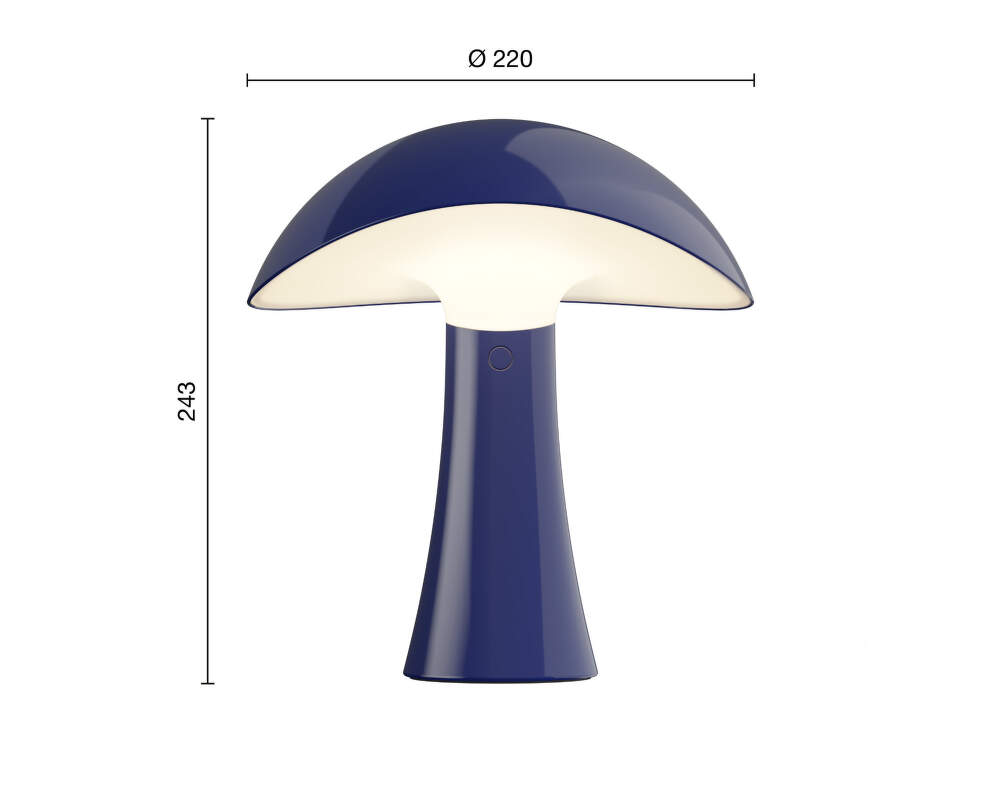 Lampa kombinuje mäkké, rozptýlené svetlo s odolnou konštrukciou z vstrekovaného polyméru. Disponuje trojstupňovým stmievaním (10 % / 33 % / 100 %), vďaka čomu je možné ľahko meniť intenzitu svetla podľa vašej nálady a situácie. Nabíjateľná lítium-iónová batéria poskytuje až 5 hodín prevádzky pri plnom jasu a nabíja sa prostredníctvom kábla USB-C. Počas nabíjania jemne svieti kontrolka na základni.
