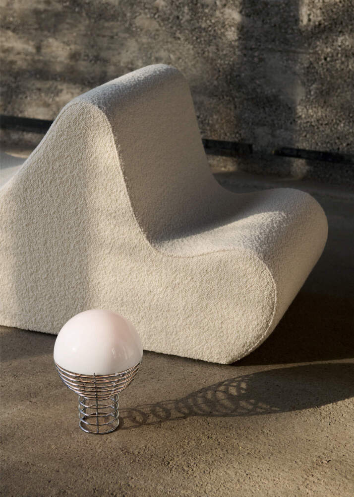 Prenosná lampa Wire vychádza z ikonického návrhu Vernera Pantona z počiatku 70. rokov a prevádza jeho charakteristickú otvorenú konštrukciu do flexibilného, bezdrôtového formátu. Zachováva ľahkosť oceľového drôtu aj výraz opálovej kupoly, zároveň však ponúka slobodu pohybu a možnosť umiestnenia bez pevného zapojenia.