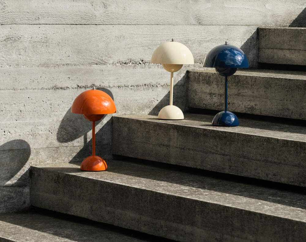 Prenosná lampička Flowerpot VP9 je o niečo menšia ako stolná lampa z rovnakej kolekcie. Je zámerne ľahšia a je k dispozícii v širokej škále farieb. Svojím prevedením vnesie útulnú atmosféru do interiéru i exteriéru.