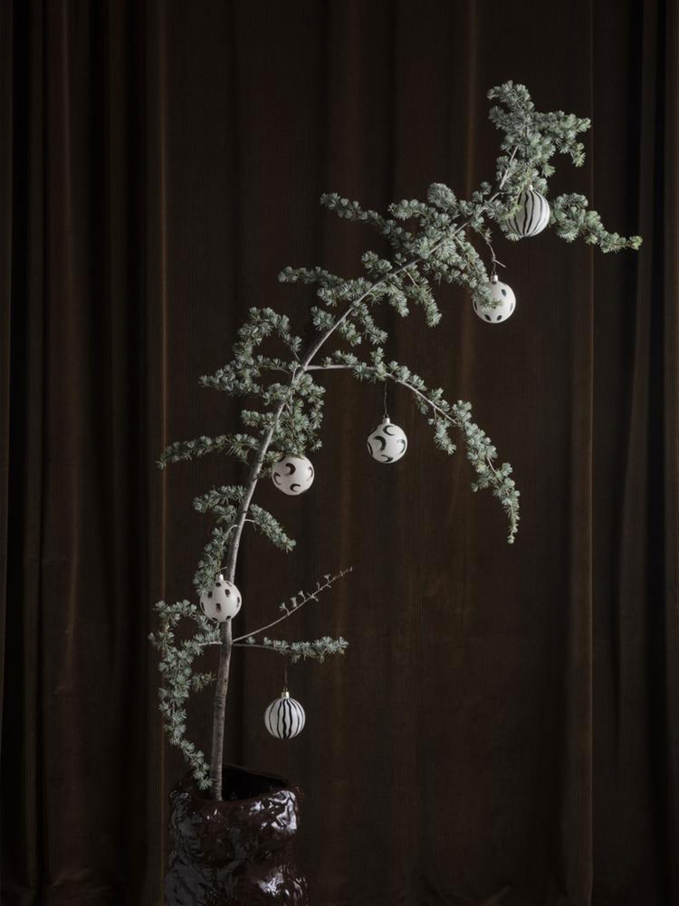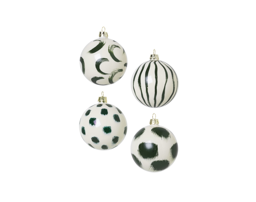 Sada 4 ks sklenených ručne maľovaných vianočných ozdôb od značky Ferm Living v zelenom prevedení.