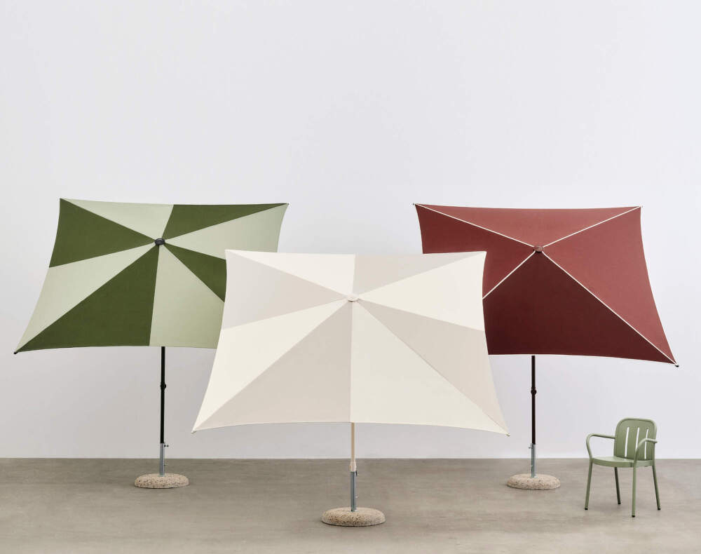 Hravý odolný slnečník Terrazza Square od dánskej značky HAY. Farba: zelená.