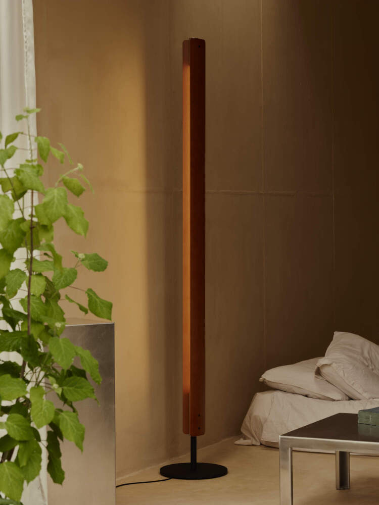 Stojacia lampa Seki-Han, pôvodne navrhnutá Tobiou Scarpou v roku 1963, predstavuje jedinečnú kombináciu remeselného umenia, modernej technológie a precízneho spracovania. Dve vertikálne lamely z jaseňového dreva, spojené chrómovanými kovovými prvkami, obklopujú centrálny rúrkový svetelný zdroj. Listy je možné otáčať okolo svojej osi, čím sa mení intenzita a smer svetla, od mäkkého rozptýleného svetla po koncentrovaný lúč. Tento pohyb vytvára dynamickú hru svetla a tieňa a umožňuje používateľovi plne ovplyvňovať atmosféru priestoru.