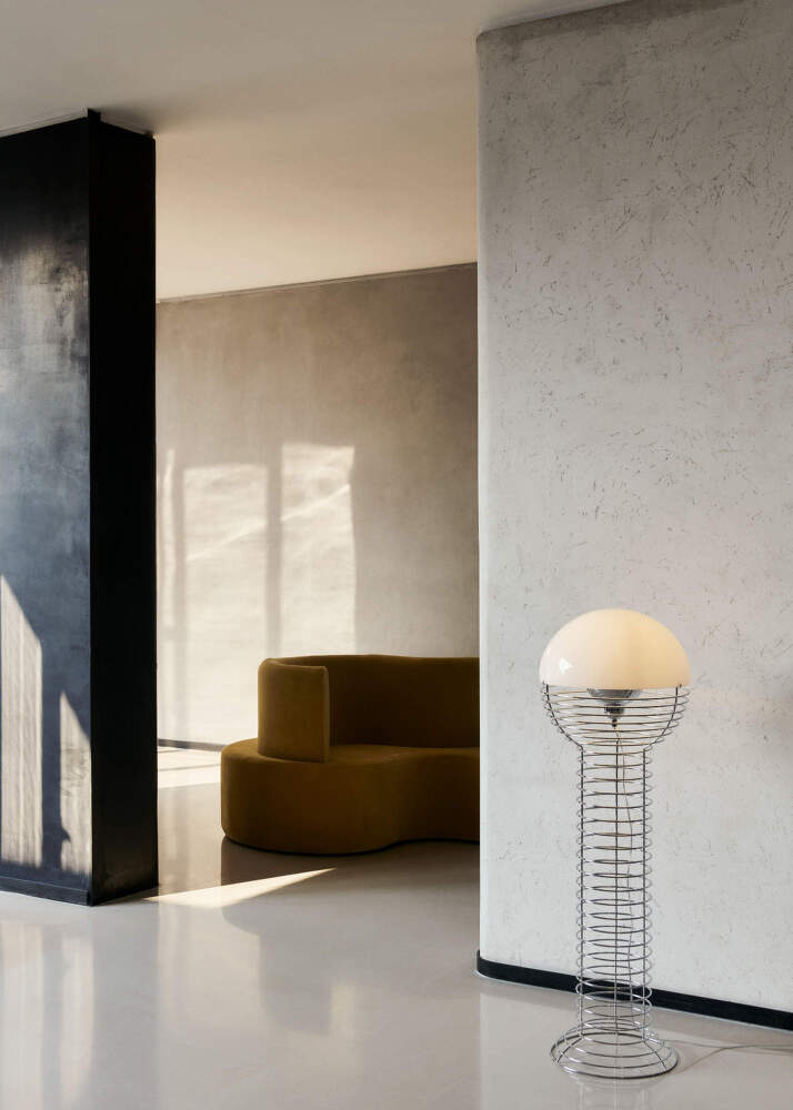 Stojacia lampa Wire patrí k ikonickým návrhom Vernera Pantona z počiatku 70. rokov a predstavuje experiment s oceľovým drôtom v jeho najčistejšej podobe. Otvorená konštrukcia z pochrómovaného drôtu vytvára ľahkú a geometricky presnú siluetu. Svetlo tu nie je iba funkčným prvkom, ale stáva sa hlavným aktérom priestoru.