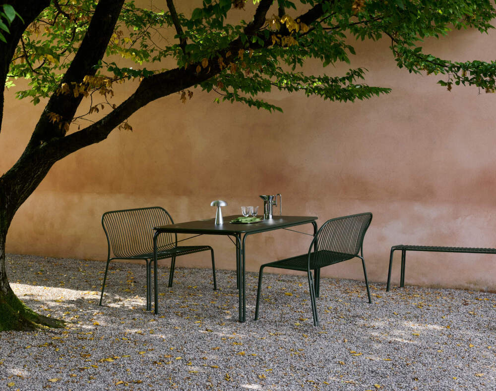 Vonkajší jedálenský stôl z odolnej ocele Thorvald SC113 od dánskej značky &Tradition navrhnutý štúdiom Space Copenhagen. Prevedenie: rozmer 160x90 cm, zelená.