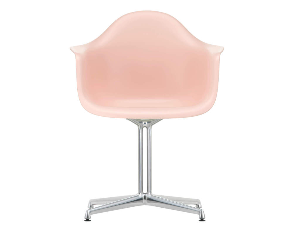 Eames DAL (Dining Height Armchair La Fonda Base) je ikonická dizajnová stolička od značky Vitra, ktorá má sedák s opierkami a základňu La Fonda. Prevedenie: základňa z lešteného hliníka, svetloružový sedák.
