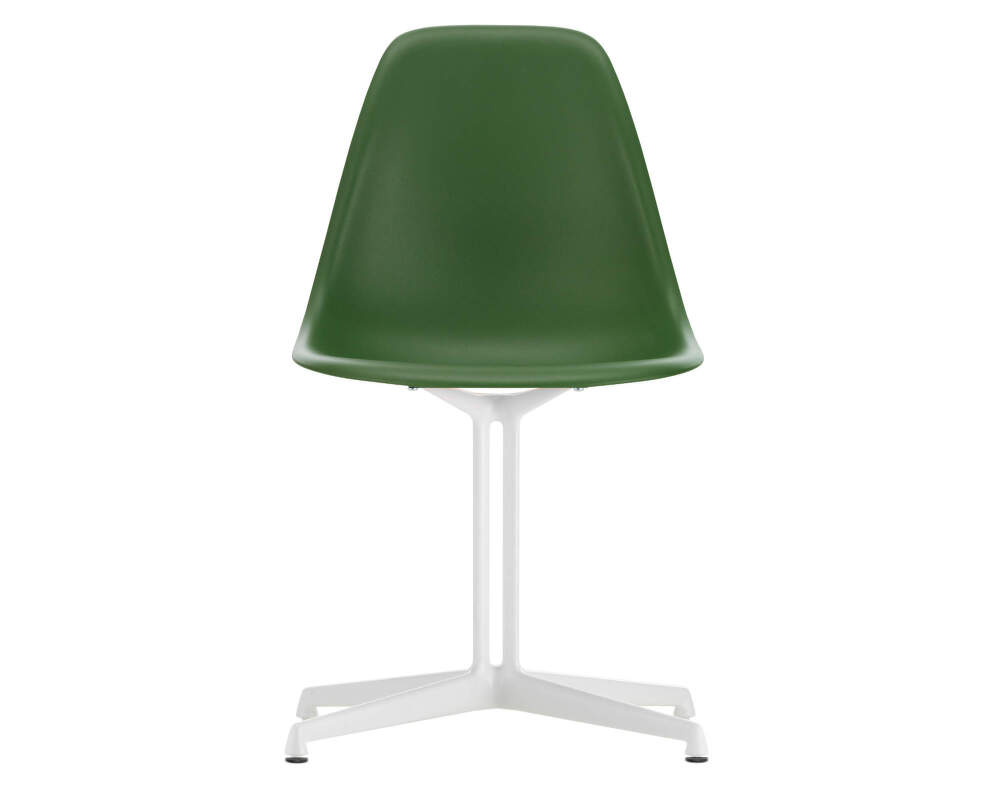 Eames DSL (Dining Height Side Chair La Fonda Base) je ikonická dizajnová stolička od značky Vitra, ktorá má plastový sedák bez opierok a základňu La Fonda. Prevedenie: biela základňa, zelený sedák.