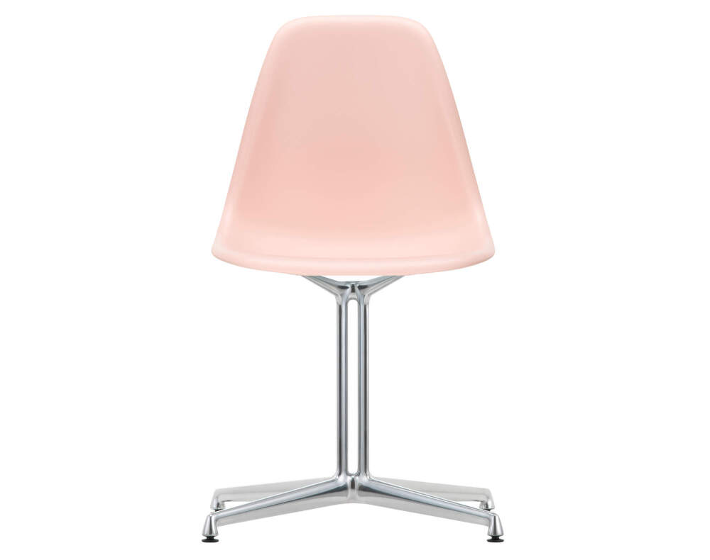 Eames DSL (Dining Height Side Chair La Fonda Base) je ikonická dizajnová stolička od značky Vitra, ktorá má plastový sedák bez opierok a základňu La Fonda. Prevedenie: základňa z lešteného hliníka, svetloružový sedák.