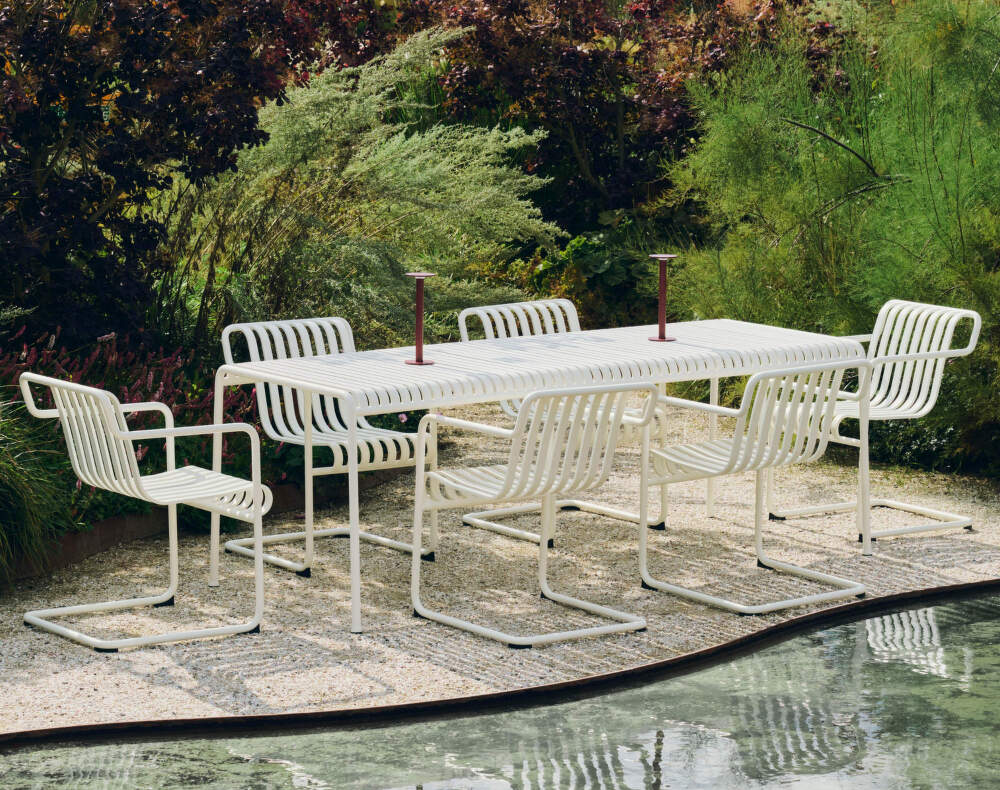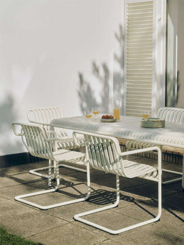 Vonkajší nábytok Palissade Cantilever je vyrobený z odolnej ocele s vysokokvalitnou povrchovou úpravou, ktorá je chránená dvoma vrstvami náteru a odoláva poveternostným vplyvom aj dlhodobému používaniu v exteriéri. Kolekcia je navrhnutá tak, aby sa prirodzene začlenila do záhrad, terás, mestských dvorov, kaviarenských záhradiek či hotelových priestorov.
