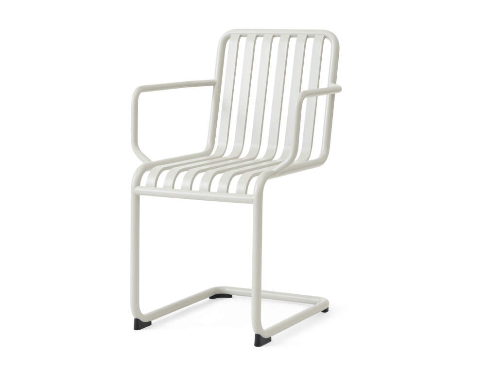 Oceľová stolička Palissade Cantilever s podrúčkami z kolekcie moderného vonkajšieho nábytku, ktorú navrhol Ronan Bouroullec pre dánsku značku HAY. Farba: sivá.