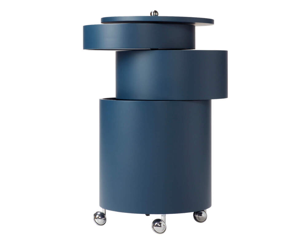 Barboy nie je len stolík, je to aj mobilná úložná skrinka na kolieskach. Tri otočné valcovité priehradky ponúkajú dostatok priestoru na uloženie drobností, dokumentov, fliaš či osobných predmetov. Vďaka pojazdnej základni ho možno jednoducho presúvať podľa aktuálnej potreby, čo z neho robí flexibilného spoločníka pre každodenný život.