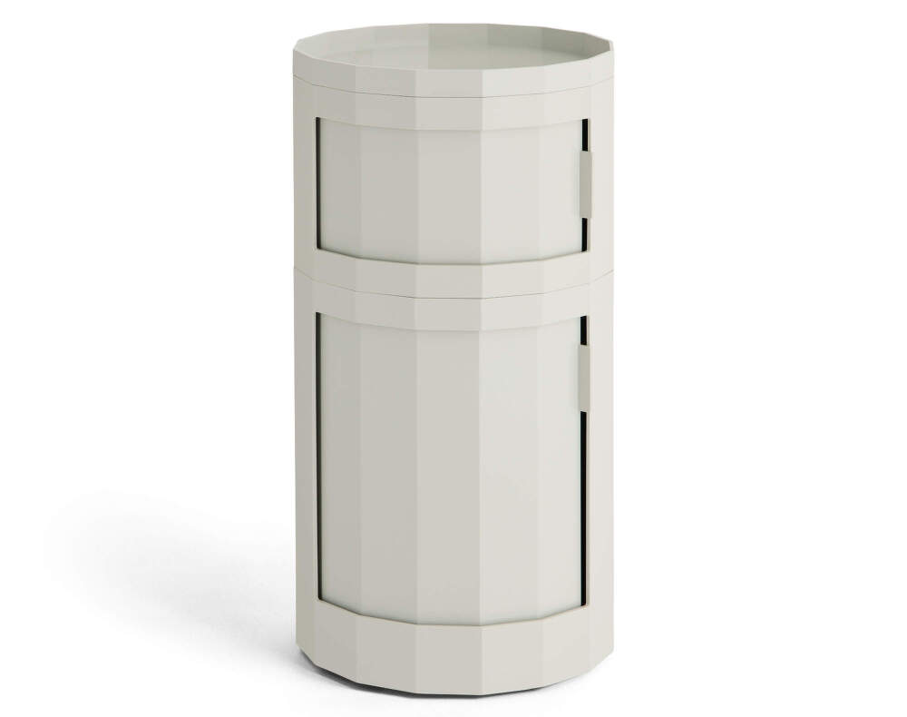 Vyšší multifunkčný stolík Facet Cabinet 110 s dvoma dvierkami, ktorý navrhol holandský dizajnér Stefan Scholten pre dánsku značku HAY. Farba: svetlosivá.