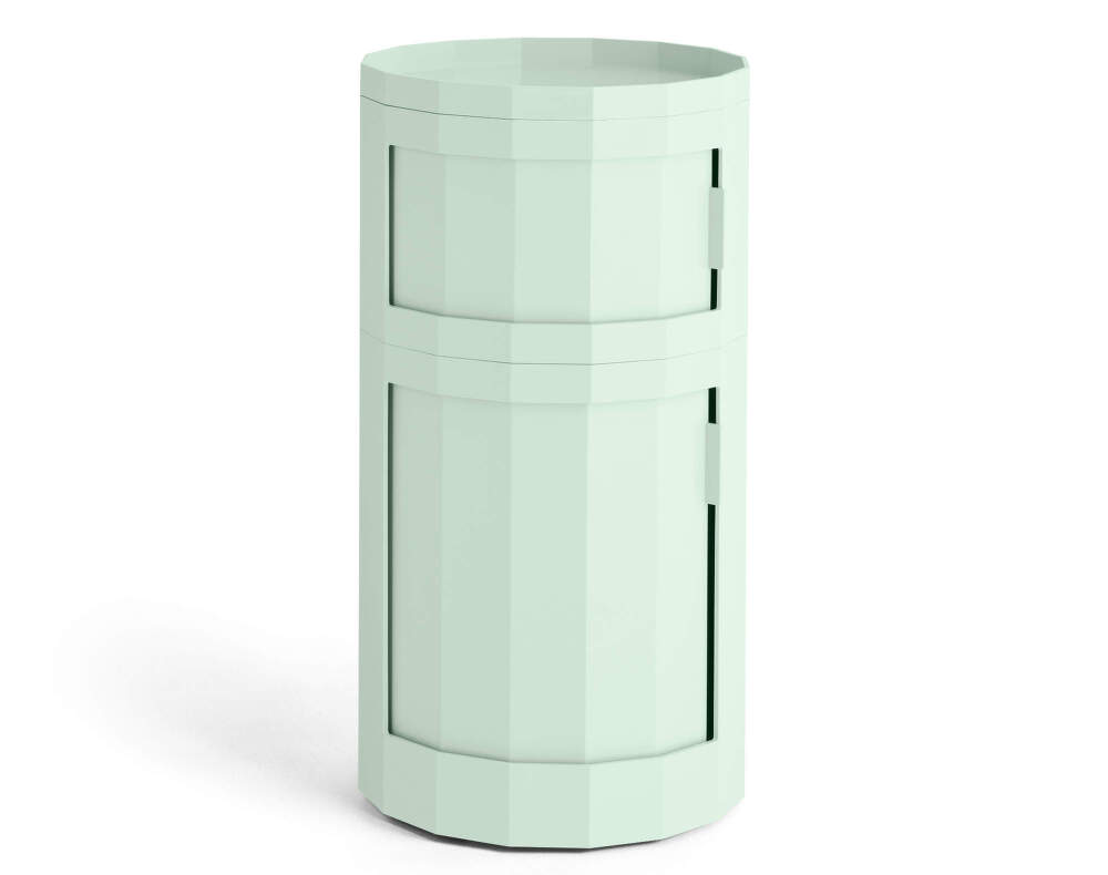 Vyšší multifunkčný stolík Facet Cabinet 110 s dvoma dvierkami, ktorý navrhol holandský dizajnér Stefan Scholten pre dánsku značku HAY. Farba: svetlomintová.