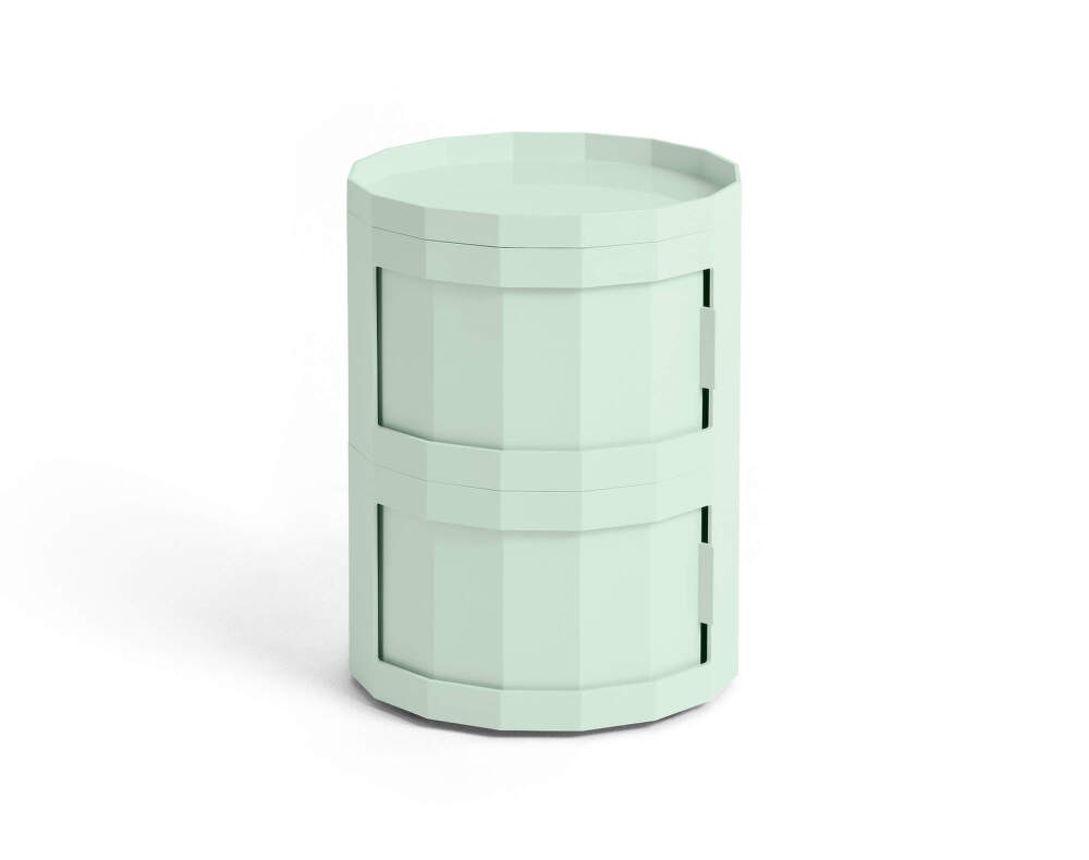 Nižší multifunkčný stolík Facet Cabinet 20 s dvoma dvierkami, ktorý navrhol holandský dizajnér Stefan Scholten pre dánsku značku HAY. Farba: svetlomintová.